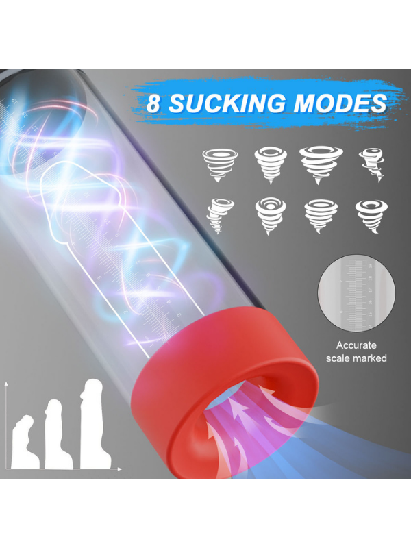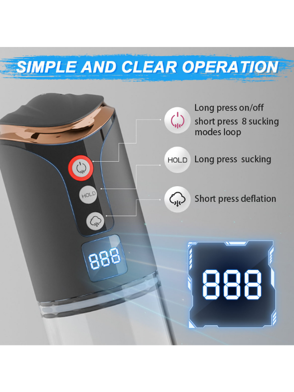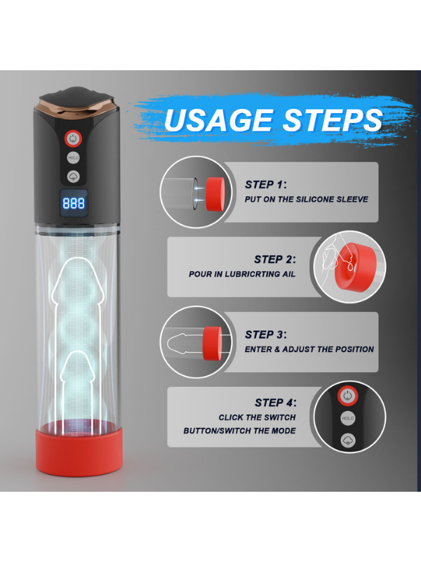 LCD ekranlı, yeni yükseltilmiş otomatik penis pompası, daha dayanıklı malzemeden üretilmiş vakum tüpü ve hava geçirmezliği artırılmış silikon kılıf ile geliştirilmiştir. Ayrıca, farklı uyarım seviyeleri sunmak için 6 farklı boyutta penis halkasıyla birlikte gelir. Tüm bu iyileştirmeler, penisinizin daha büyük, daha güçlü ve daha uzun süreli ereksiyonlara ulaşmasına yardımcı olmak için tasarlanmıştır.