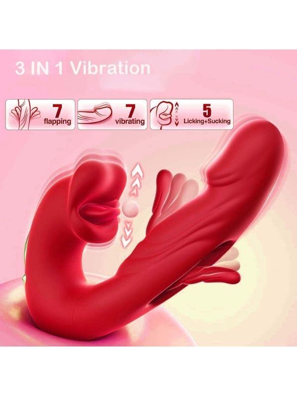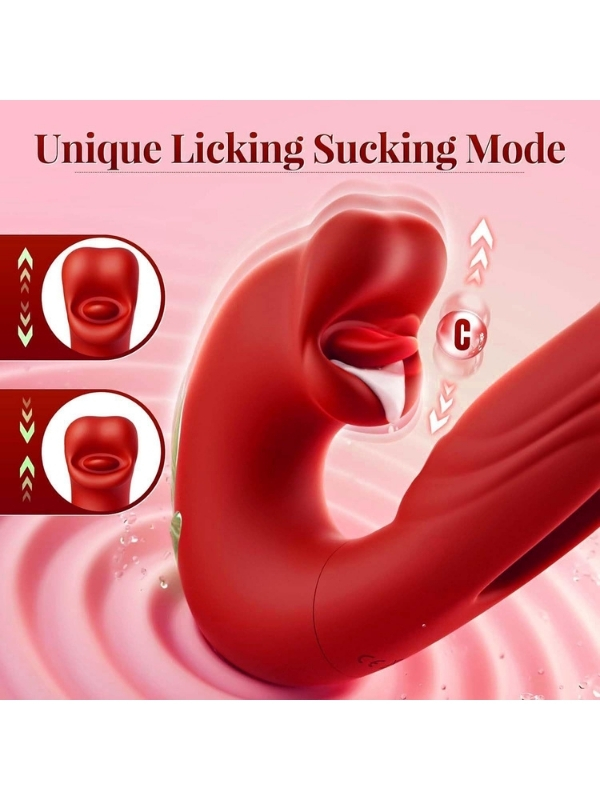 3’ü 1 Arada G Noktası ve Klitoris Vibratörü – Dil ve Emme Fonksiyonlu, Su Geçirmez Silikon Stimülatör (Kırmızı)
